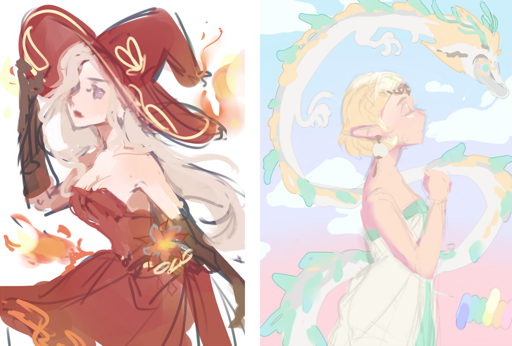 this is the last chance to change the color palette - I will not change the colors once detail work has started (eg. someone asks me to paint a blue dress and decides they actually want it to be yellow when I'm halfway done painting the highlight and shading.)